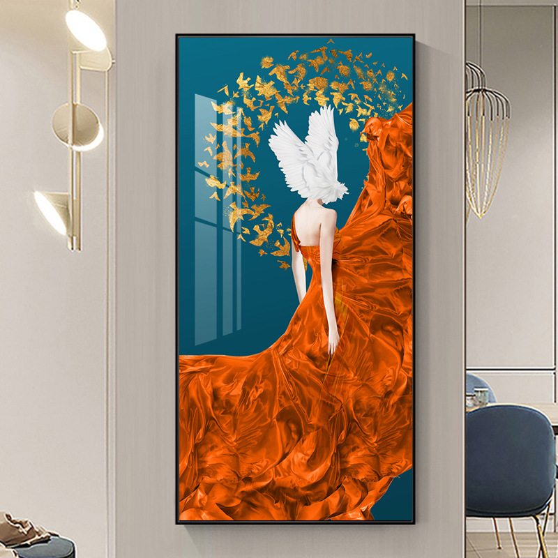 Bộ 2 Tranh Treo Tường Phòng Ngủ Hiện Đại Lông Vũ và Phụ Nữ Sang Trọng