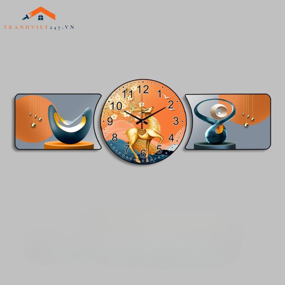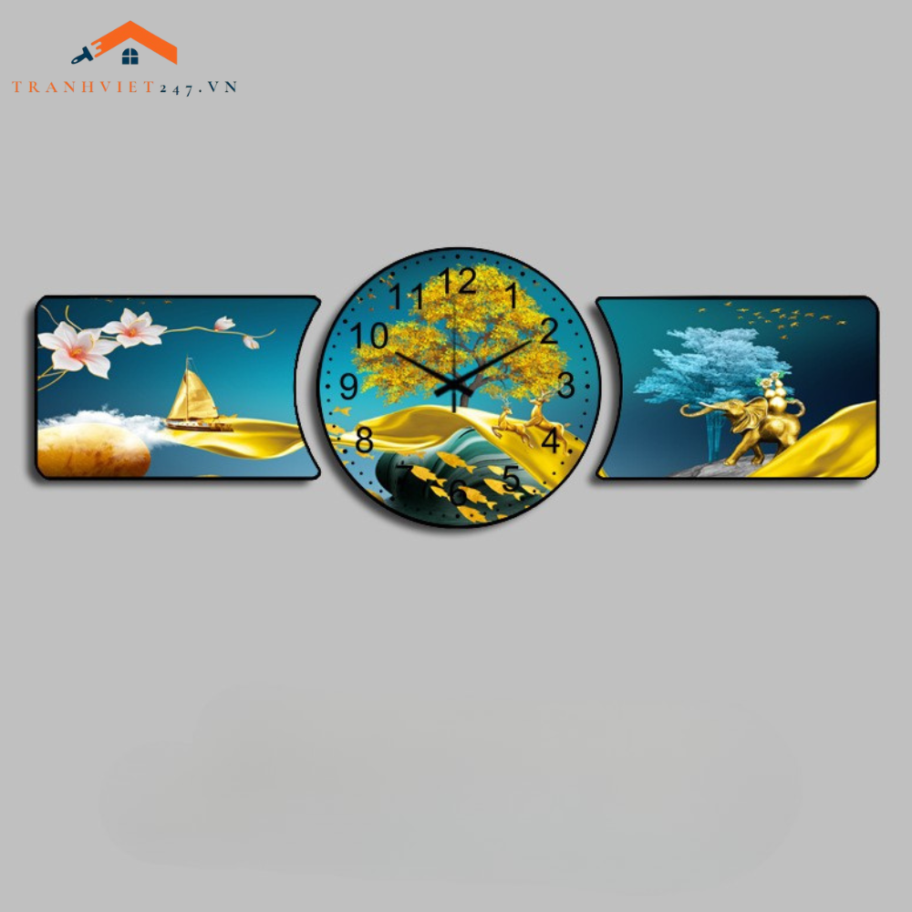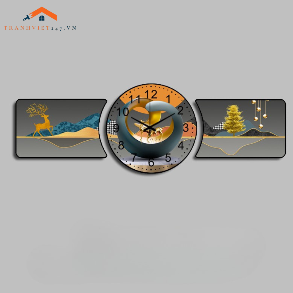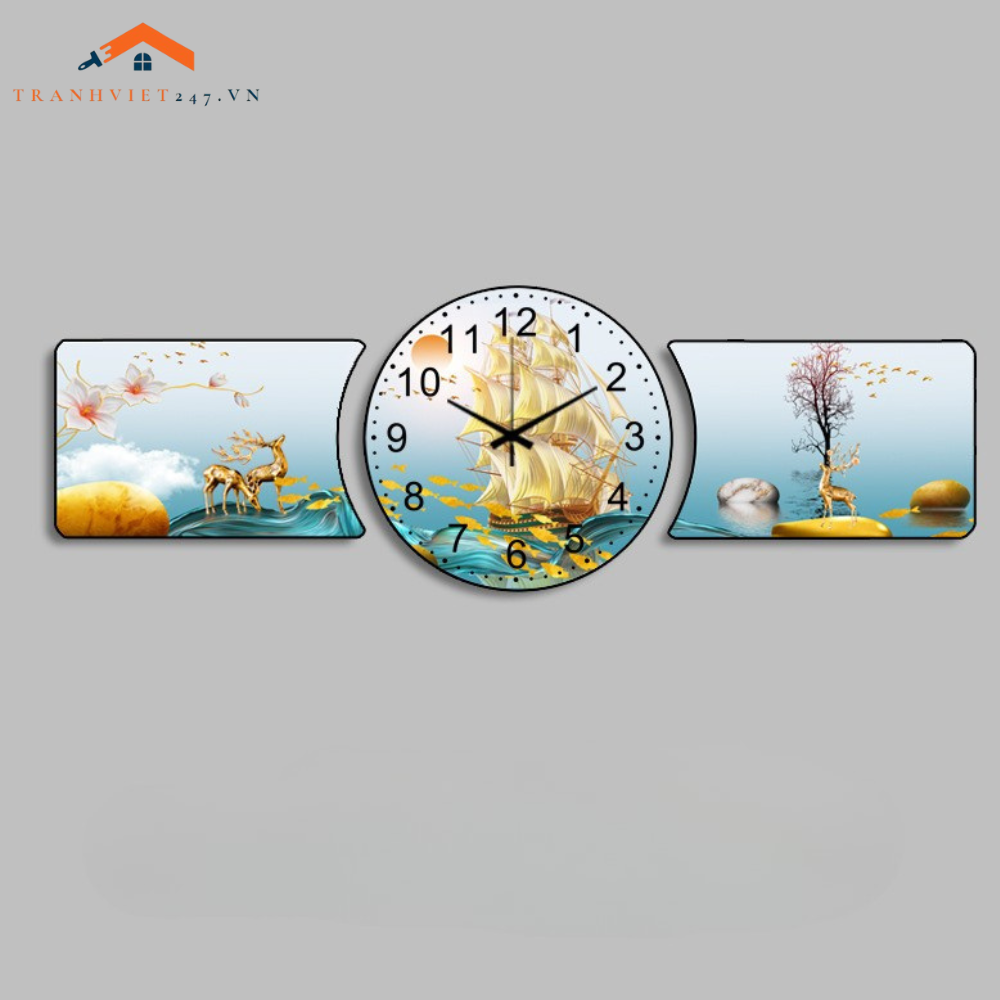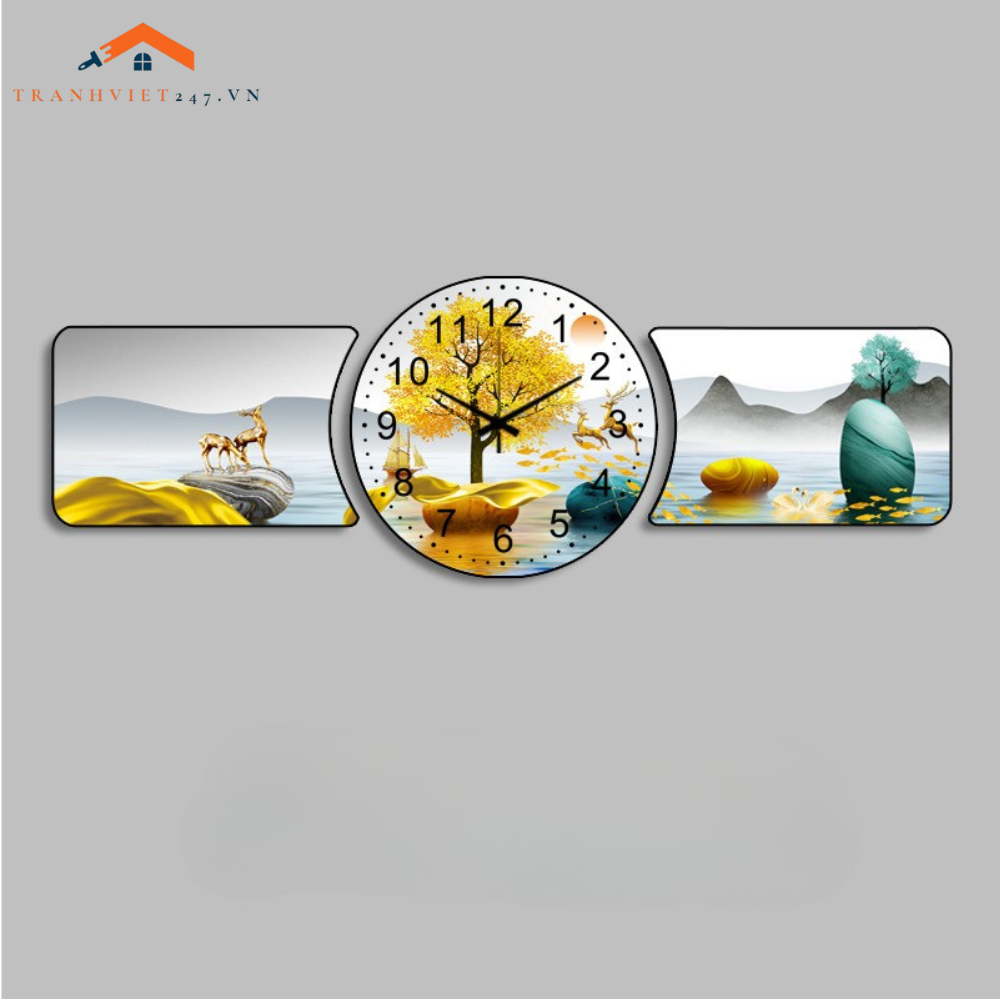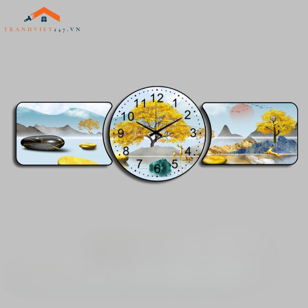 Bộ Tranh Đồng Hồ Tráng Gương Chất Liệu Cao Cấp In UV Sắc Nét