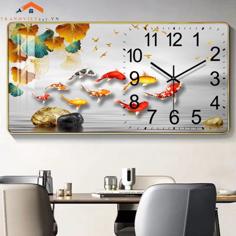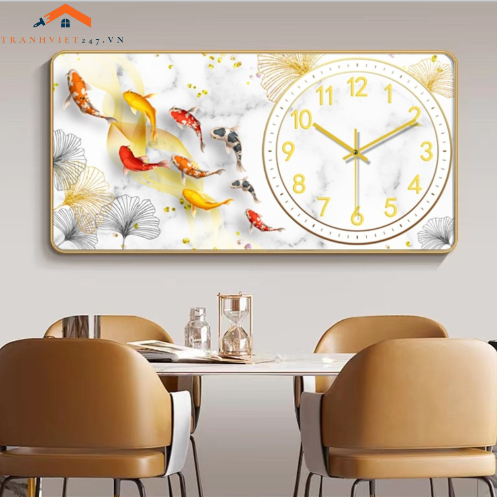 Tranh Đồng Hồ Treo Tường Hình Cá Koi này không chỉ là một vật dụng hữu ích để theo dõi thời gian mà còn là một tác phẩm nghệ thuật trang trí độc đáo, mang đến vẻ đẹp và năng lượng tích cực cho không gian sống của bạn.