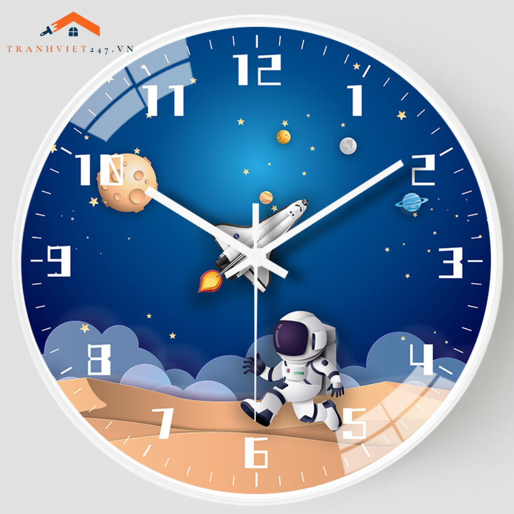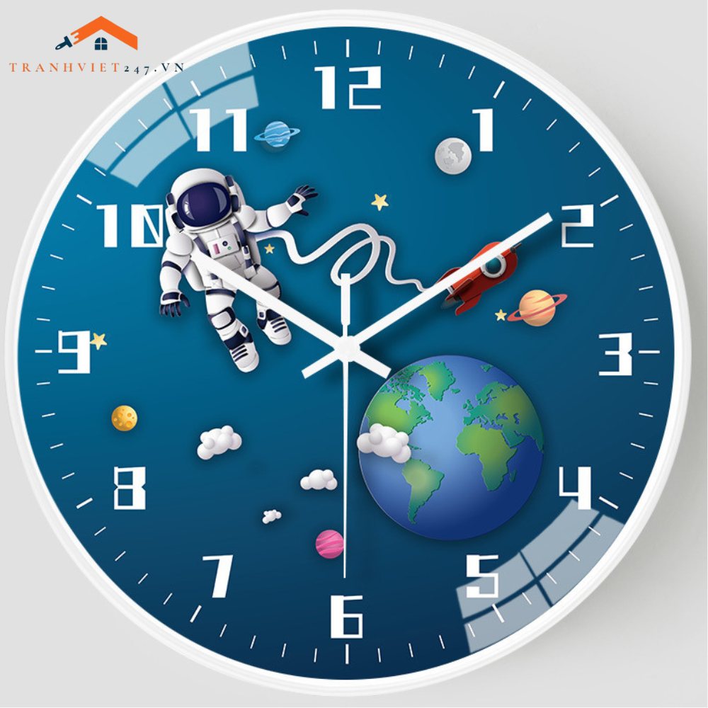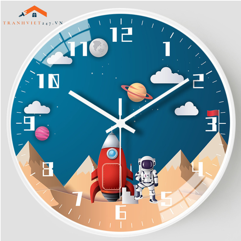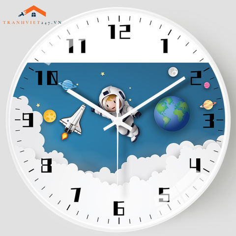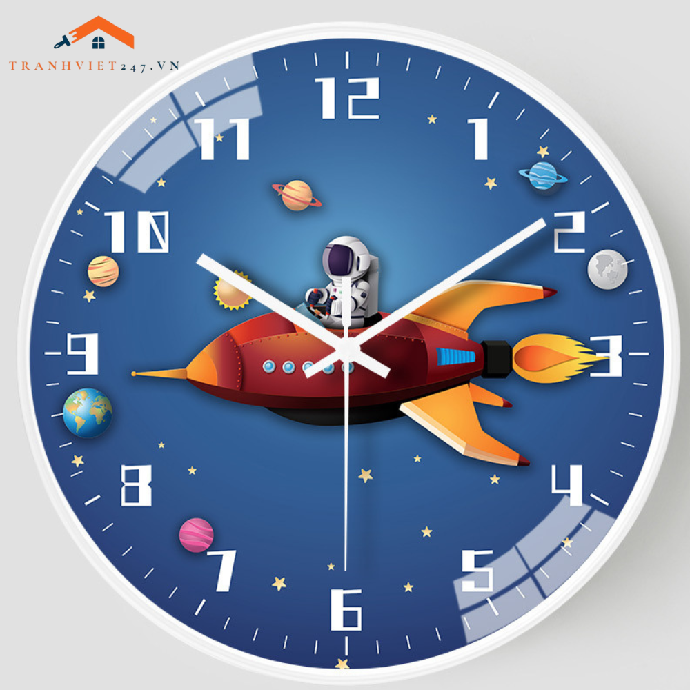 Đồng Hồ Treo Tường Tròn Chủ Đề Vũ Trụ Phi Hành Gia Tên Lửa Trang Trí Phòng Bé