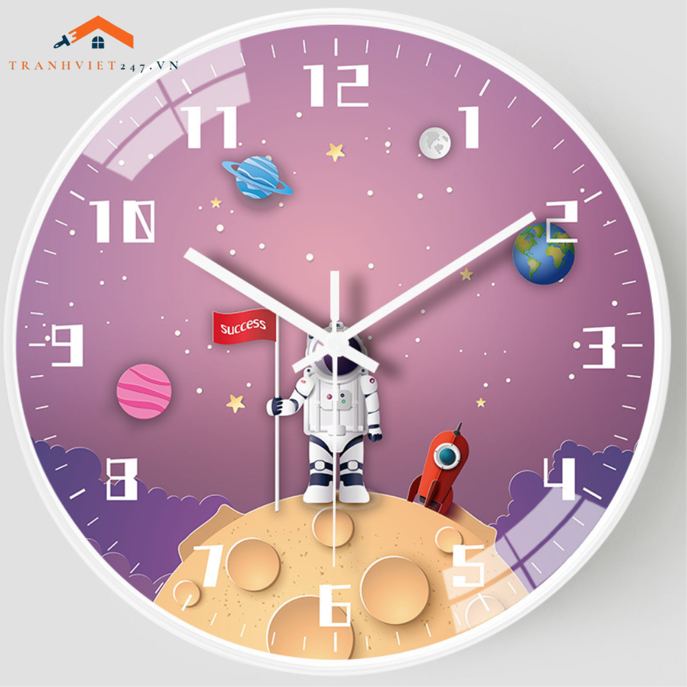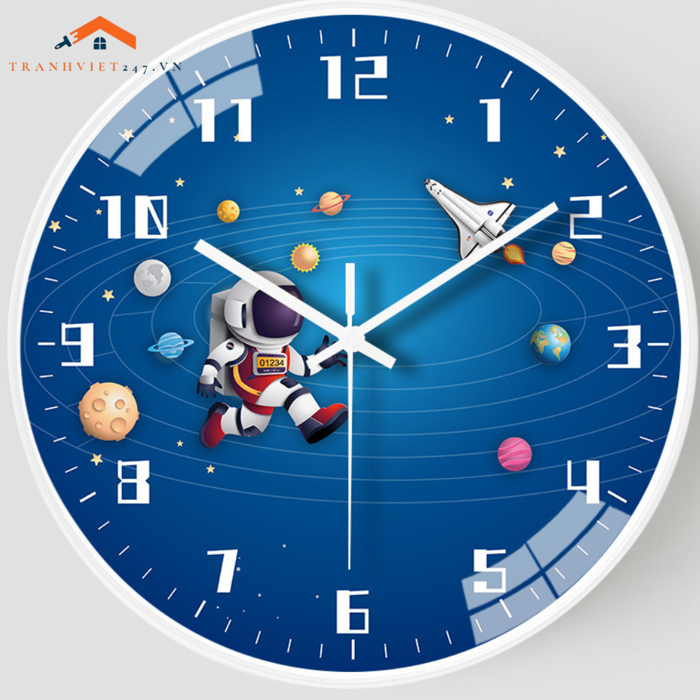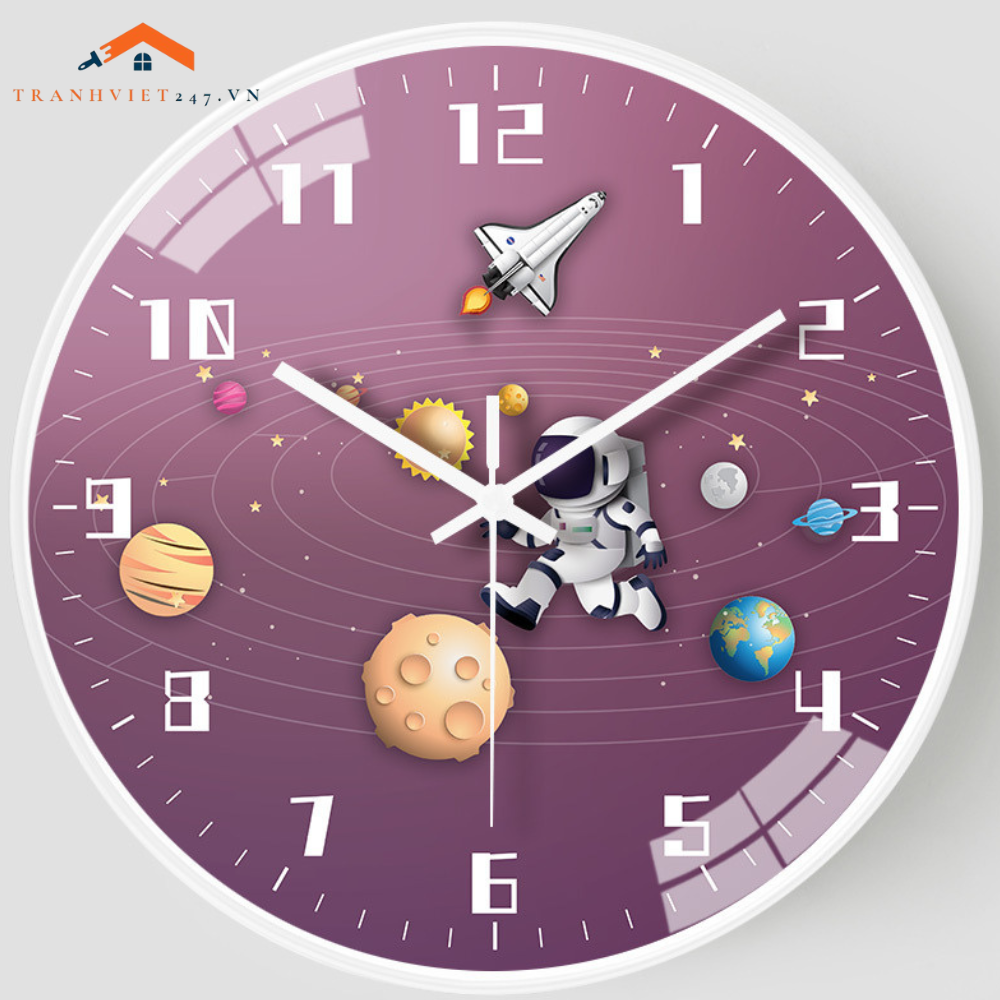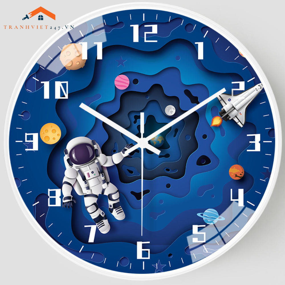Đồng Hồ Treo Tường Tròn Chủ Đề Vũ Trụ Phi Hành Gia Tên Lửa Trang Trí Phòng Bé