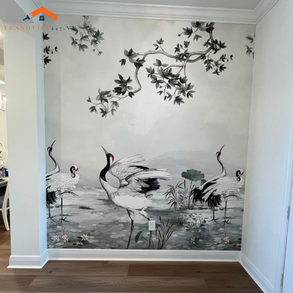 Tranh Dán Tường 3D Hạc Nhảy Múa