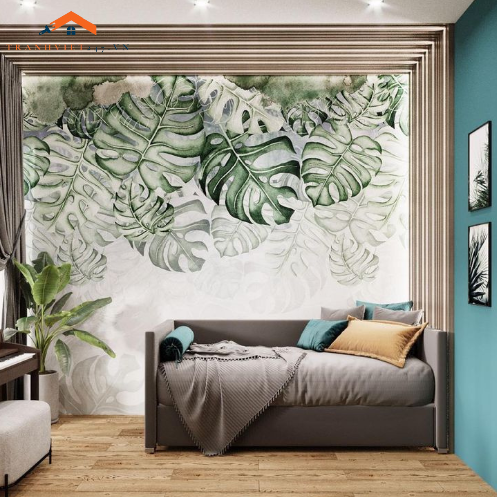 Tranh Dán Tường 3D Nghệ Thuật Lá Monstera Đơn Sắc - Decor Nhà Cửa KHUYẾN MÃI - ƯU ĐÃI