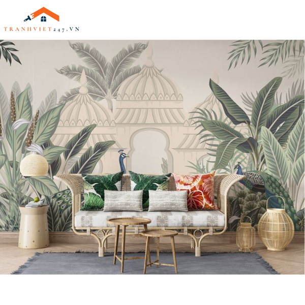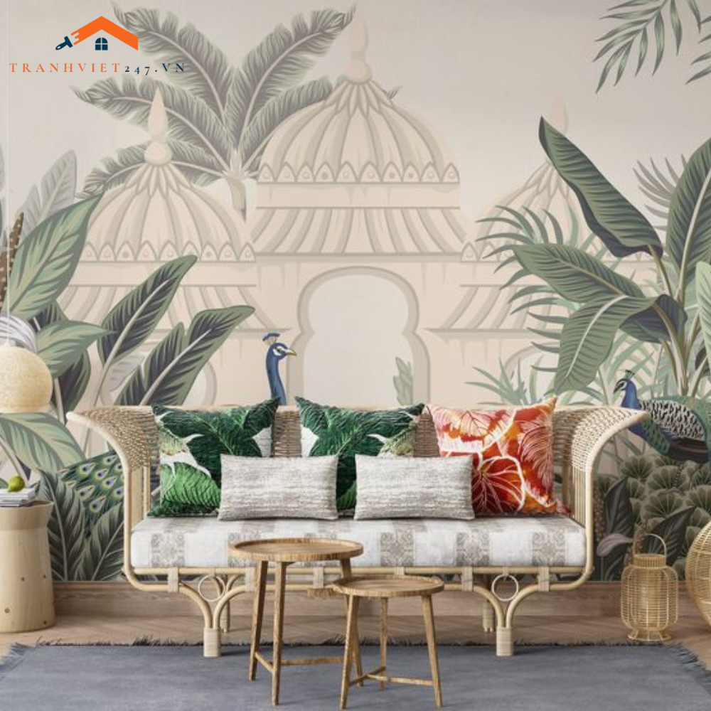 Tranh Dán Tường 3D Phong Cách Ấn Độ Và Chim Công - Trang Trí Nhà Cửa KHUYẾN MÃI - ƯU ĐÃI
