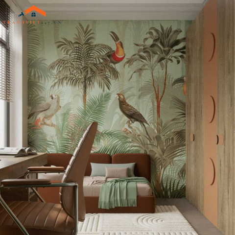 Tranh Dán Tường 3D Rừng Nhiệt Đới Xanh Tươi Và Chim Cảnh - Decor Phòng KHUYẾN MÃI - ƯU ĐÃI