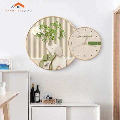 Tranh đồng hồ treo tường voi mẹ con đáng yêu mang phong cách hiện đại, tô điểm cho phòng khách, phòng ngủ thêm ấm áp.