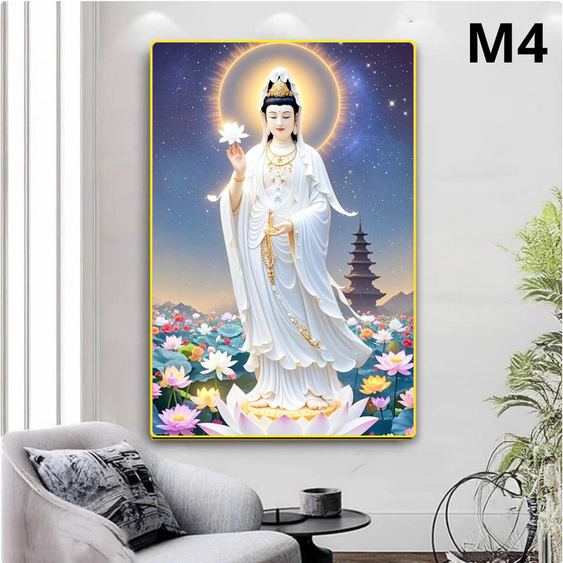 - Bề mặt tranh chống bám bụi, dễ vệ sinh, giữ tranh luôn sáng bóng, bền màu theo thời gian.Tích hợp ánh sáng huyền ảo, tranh trở thành điểm nhấn phong thủy, phù hợp với không gian tâm linh.
